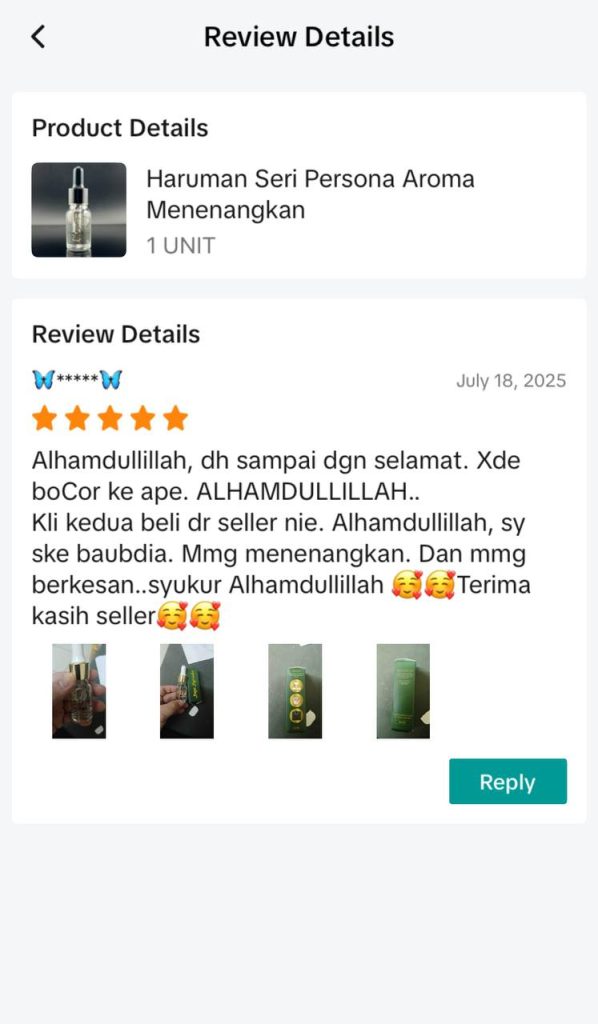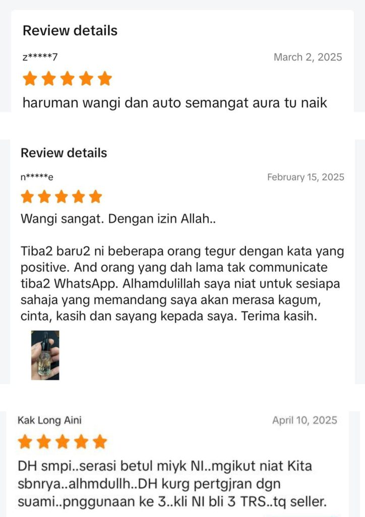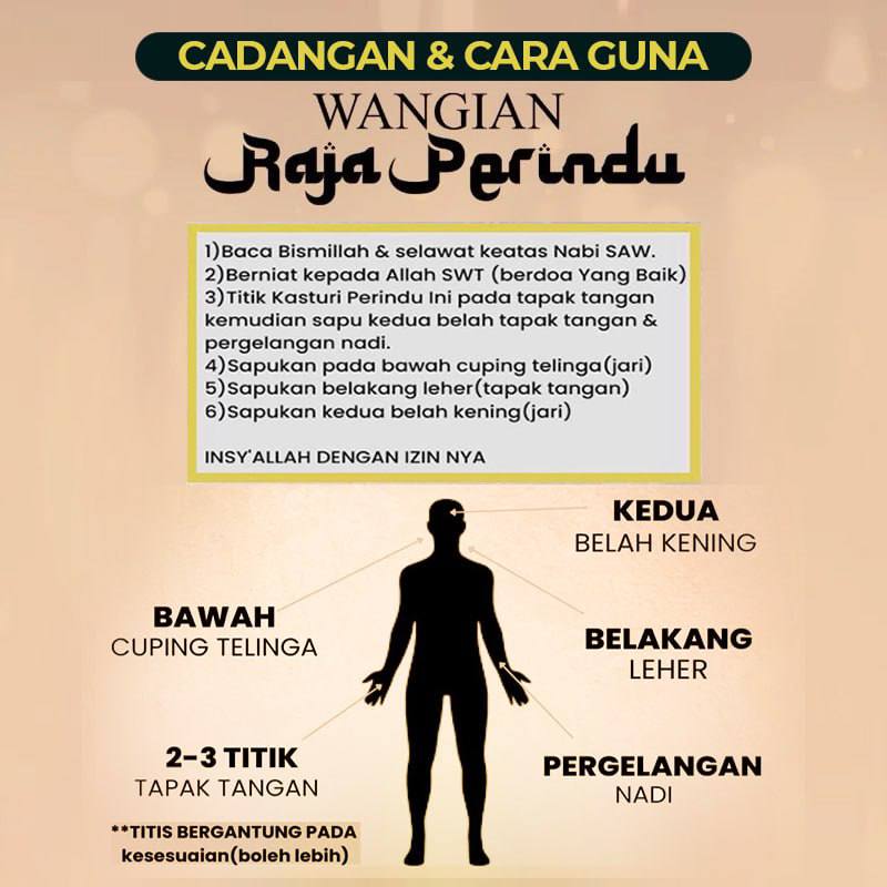1 – Elakkan wangian ini dari di langkah dengan sengaja kerana wangian telah di syifakan dengan ayat-ayat Al-Quran.