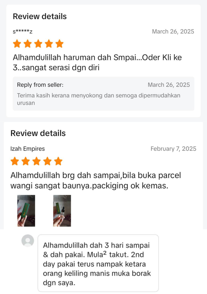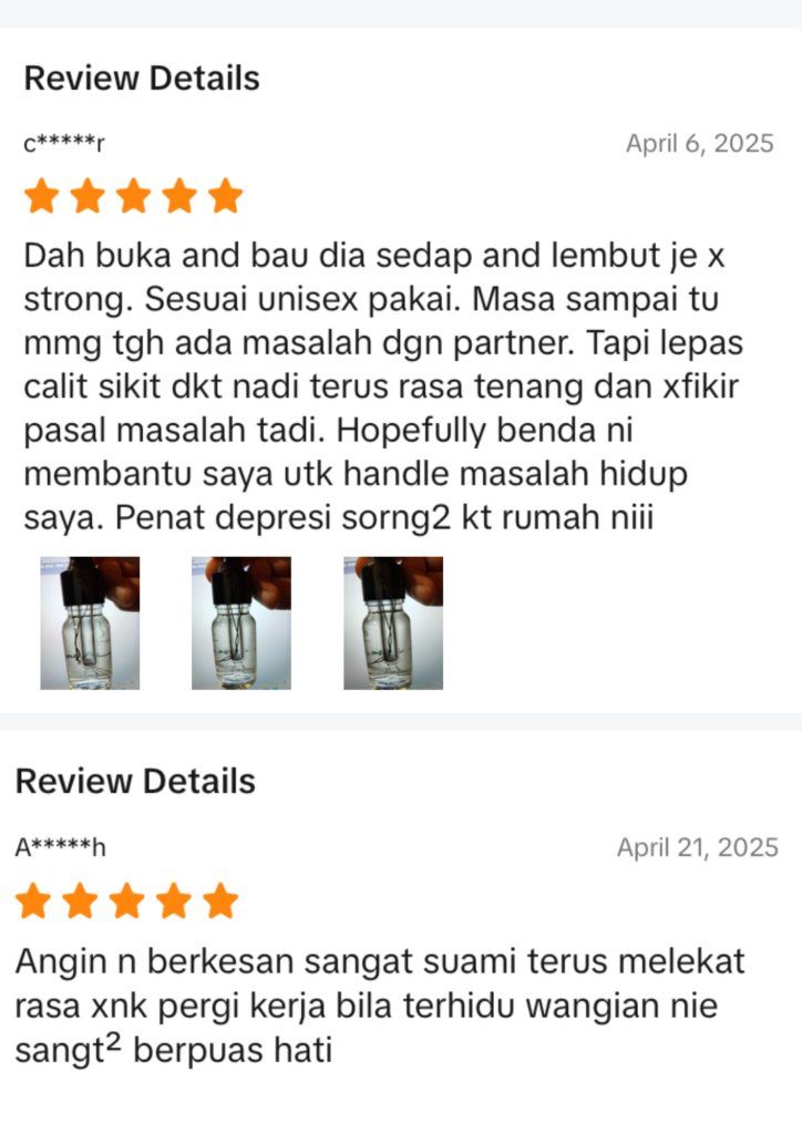 InsyaAllah berkesan dengan izin Allah, Namun keberkesanan kepada setiap individu adalah berbeza, Wangian ini hanyalah ikhtiar untuk memudahkan urusan seharian kita, walau bagaimanapun hanya Allah yang memberikan keizinan. Kesan untuk setiap individu adalah berbeza bergantung pada masalah yang di hadapi individu tersebut. Namun ada yang menggunakan wangian ini berkesan seawal 1 minggu.